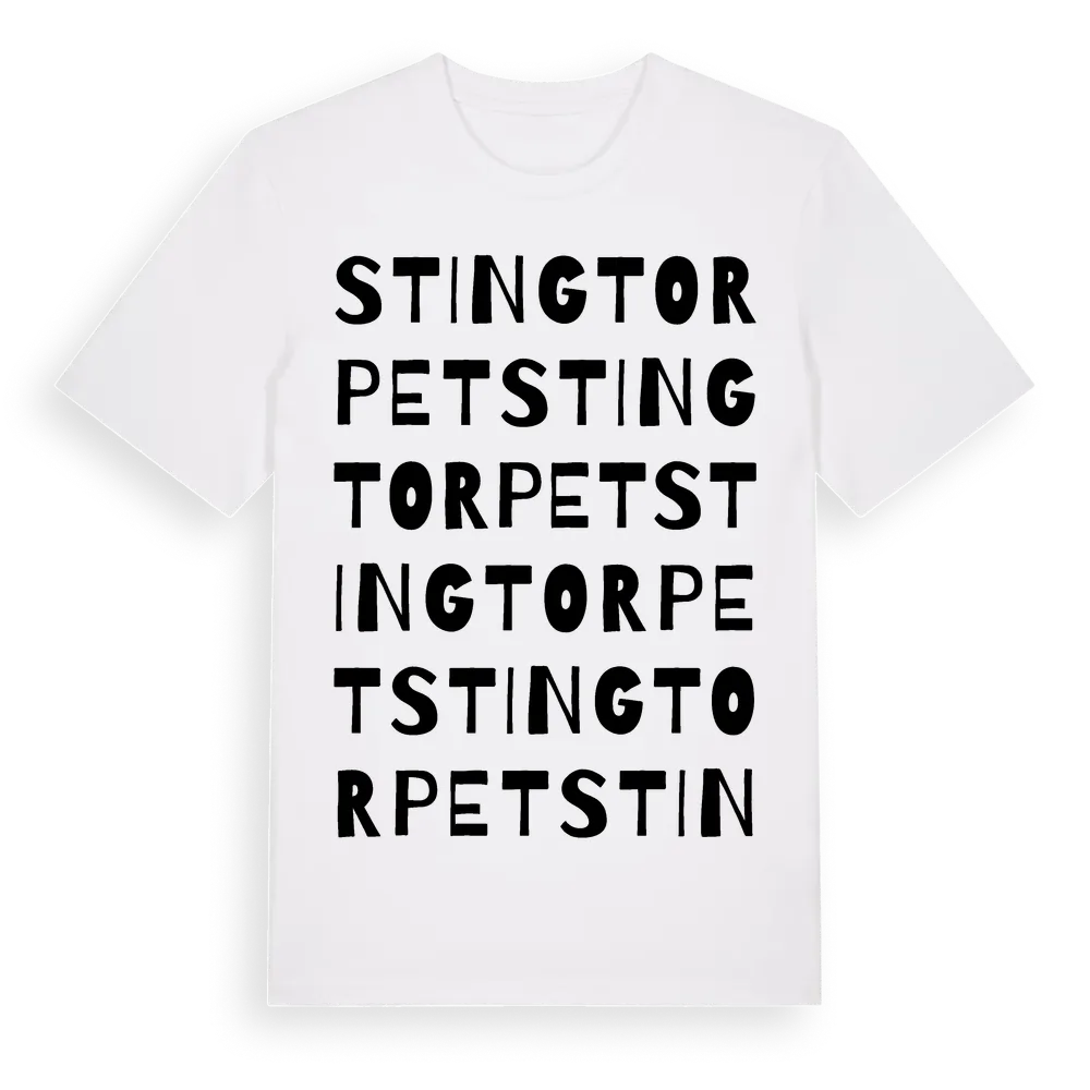Stingtorpet ordlek t-shirt är inspirerad av byn Stingtorpet i Uppsala län, Sverige. Tröjan är designad för dig som har en speciell koppling till platsen – oavsett om du bor här, har rötterna här eller bara älskar Stingtorpet.