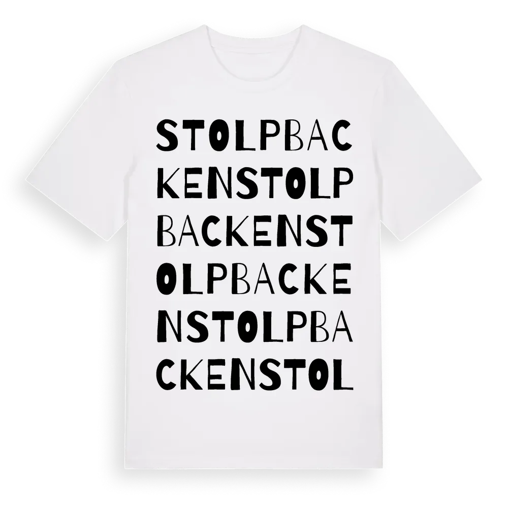 Stolpbacken ordlek t-shirt är inspirerad av Stolpbacken i Uppsala län, Sverige. Tröjan är designad för dig som har en speciell koppling till platsen – oavsett om du bor här, har rötterna här eller bara älskar Stolpbacken.