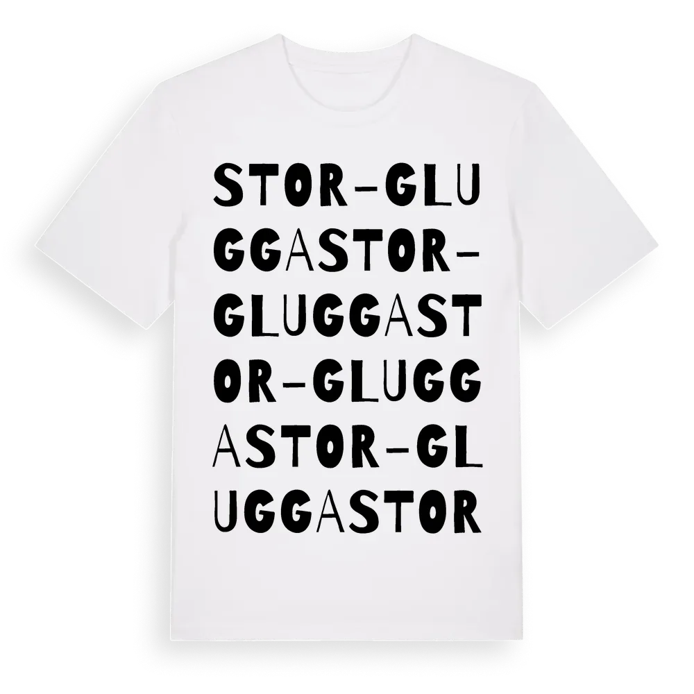 Stor-Glugga ordlek t-shirt är inspirerad av Stor-Glugga i Uppsala län, Sverige. Tröjan är designad för dig som har en speciell koppling till platsen – oavsett om du bor här, har rötterna här eller bara älskar Stor-Glugga.