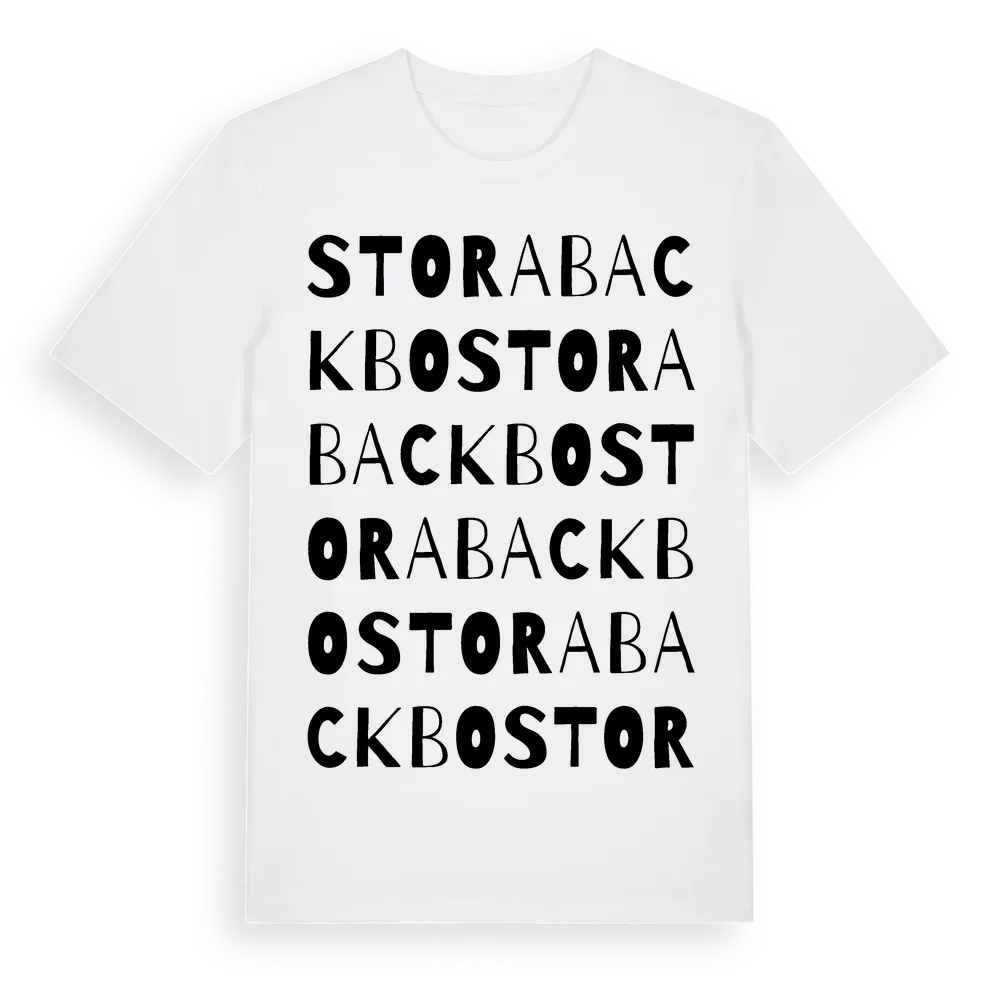 Stora Backbo ordlek t-shirt är inspirerad av Stora Backbo i Uppsala län, Sverige. Tröjan är designad för dig som har en speciell koppling till platsen – oavsett om du bor här, har rötterna här eller bara älskar Stora Backbo.