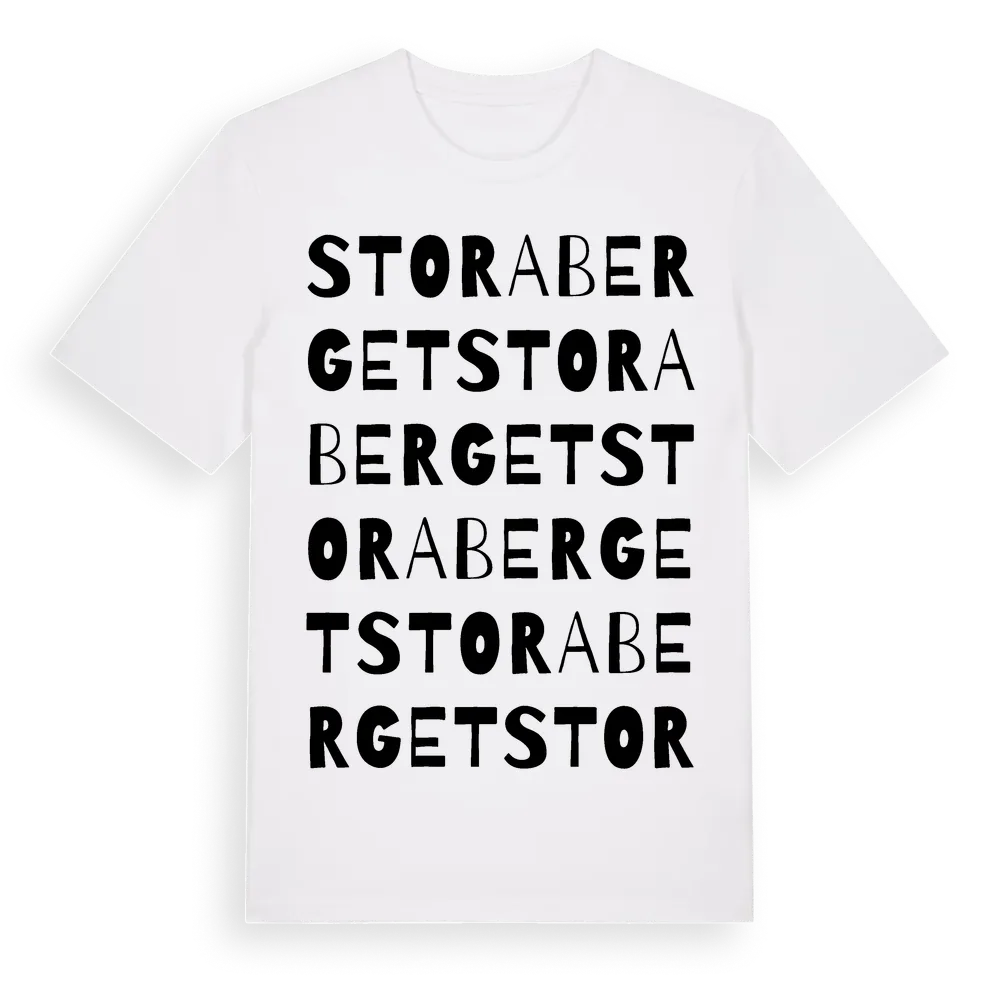 Stora Berget ordlek t-shirt är inspirerad av Stora Berget i Uppsala län, Sverige. Tröjan är designad för dig som har en speciell koppling till platsen – oavsett om du bor här, har rötterna här eller bara älskar Stora Berget.