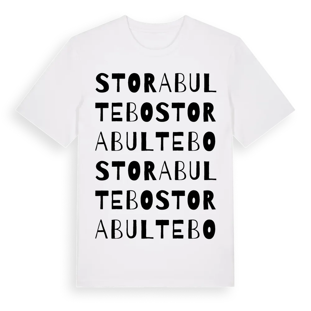 Stora Bultebo ordlek t-shirt är inspirerad av Stora Bultebo i Uppsala län, Sverige. Tröjan är designad för dig som har en speciell koppling till platsen – oavsett om du bor här, har rötterna här eller bara älskar Stora Bultebo.