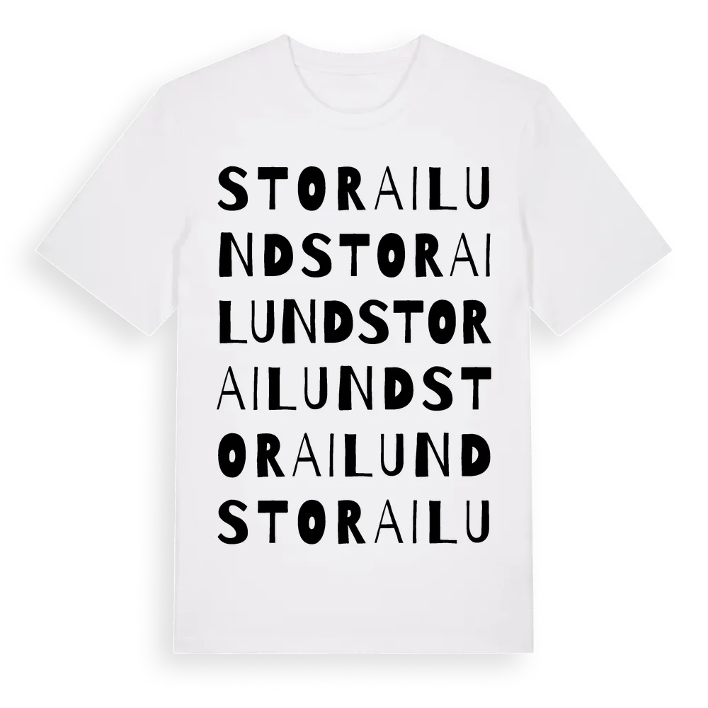 Stora Ilund ordlek t-shirt är inspirerad av Stora Ilund i Uppsala län, Sverige. Tröjan är designad för dig som har en speciell koppling till platsen – oavsett om du bor här, har rötterna här eller bara älskar Stora Ilund.