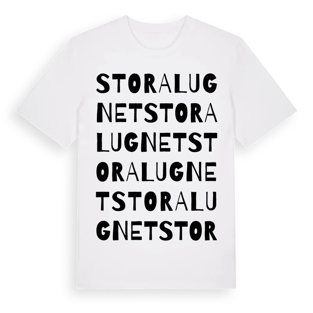 En ordlek byggd på Stora Lugnets namn. Subtilt och klurig – ett motiv som bara de som verkligen känner platsen fullt ut förstår. Premium bomull, unisex – från Stora Lugnet i Uppsala län.