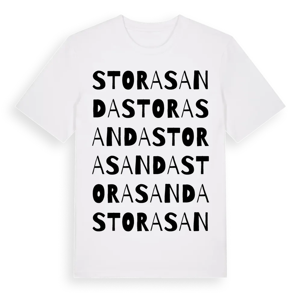 Stora Sanda ordlek t-shirt är inspirerad av Stora Sanda i Uppsala län, Sverige. Tröjan är designad för dig som har en speciell koppling till platsen – oavsett om du bor här, har rötterna här eller bara älskar Stora Sanda.