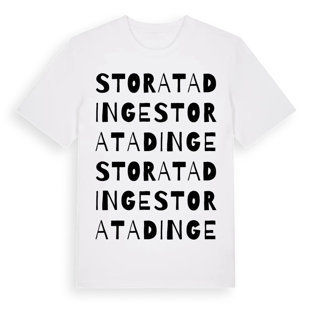 En ordlek byggd på Stora Tadinges namn. Subtilt och klurig – ett motiv som bara de som verkligen känner platsen fullt ut förstår. Premium bomull, unisex – från Stora Tadinge i Uppsala län.