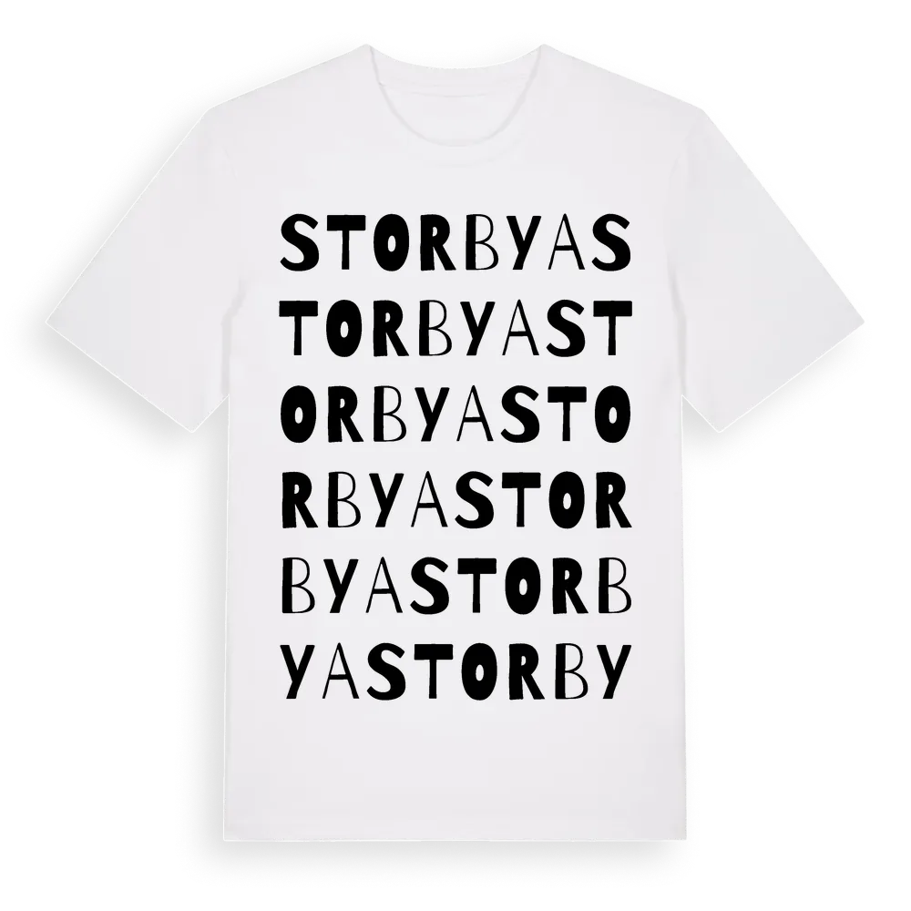 Storbya ordlek t-shirt är inspirerad av Storbya i Uppsala län, Sverige. Tröjan är designad för dig som har en speciell koppling till platsen – oavsett om du bor här, har rötterna här eller bara älskar Storbya.