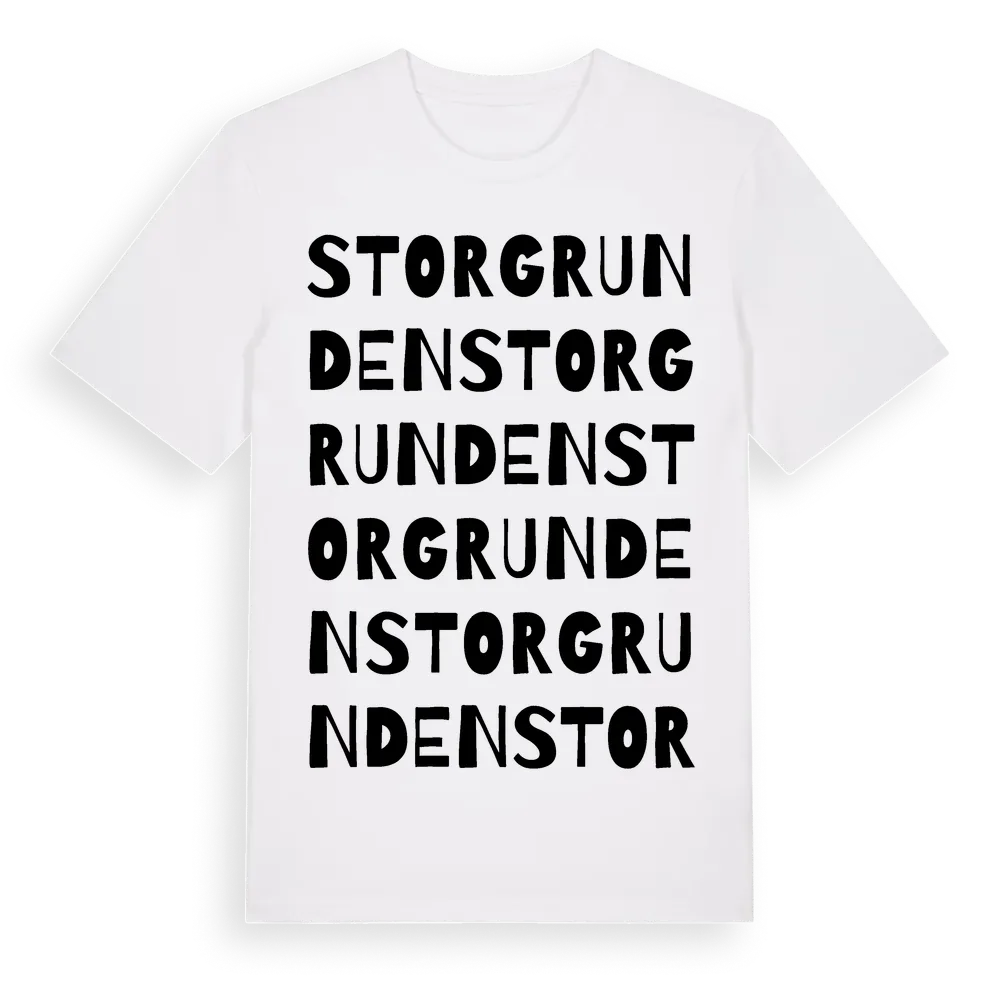 Storgrunden ordlek t-shirt är inspirerad av ön Storgrunden i Uppsala län, Sverige. Tröjan är designad för dig som har en speciell koppling till platsen – oavsett om du bor här, har rötterna här eller bara älskar Storgrunden.