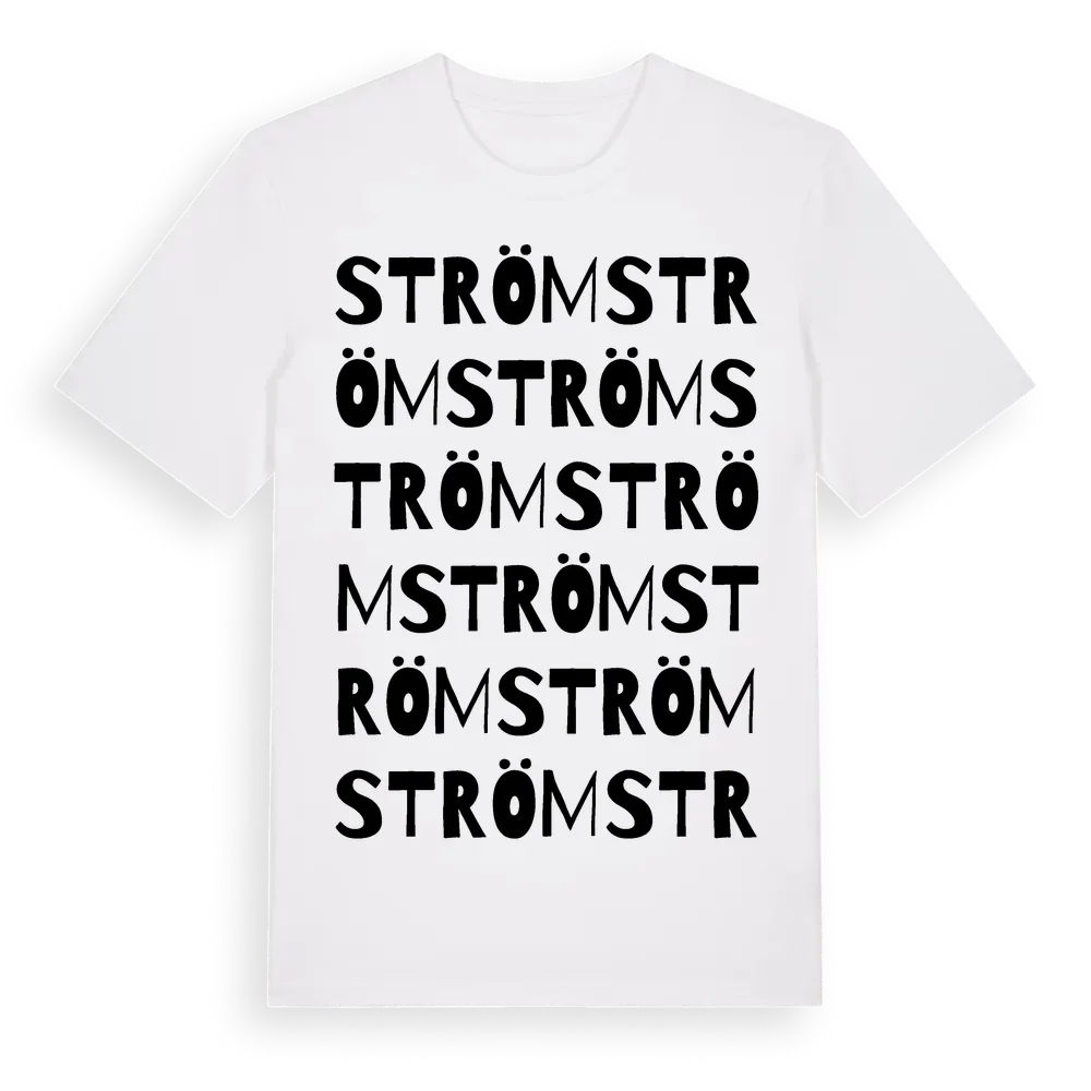 Ström ordlek t-shirt är inspirerad av Ström i Uppsala län, Sverige. Tröjan är designad för dig som har en speciell koppling till platsen – oavsett om du bor här, har rötterna här eller bara älskar Ström.