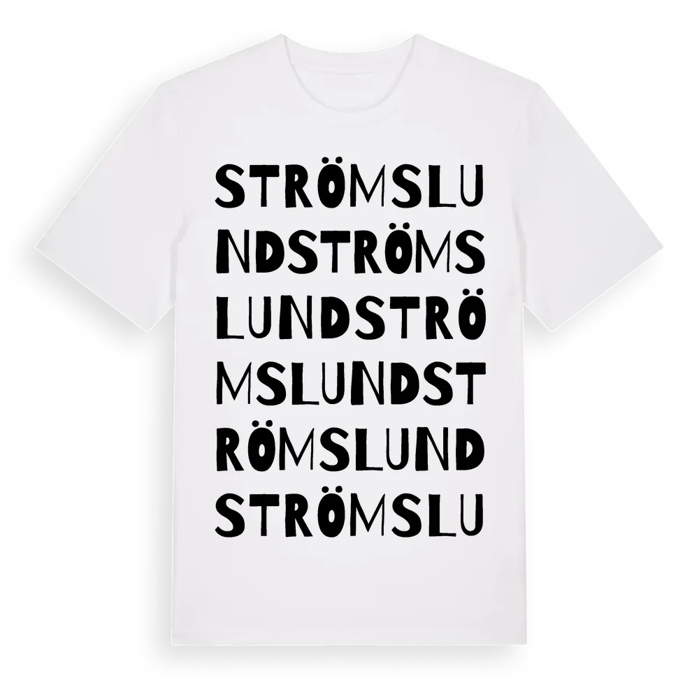 Strömslund ordlek t-shirt är inspirerad av Strömslund i Uppsala län, Sverige. Tröjan är designad för dig som har en speciell koppling till platsen – oavsett om du bor här, har rötterna här eller bara älskar Strömslund.