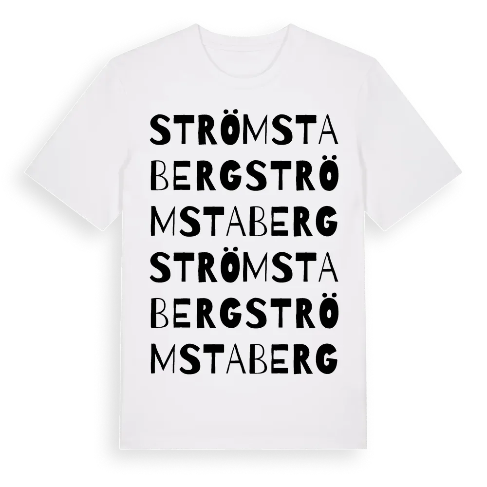 Strömstaberg ordlek t-shirt är inspirerad av Strömstaberg i Uppsala län, Sverige. Tröjan är designad för dig som har en speciell koppling till platsen – oavsett om du bor här, har rötterna här eller bara älskar Strömstaberg.