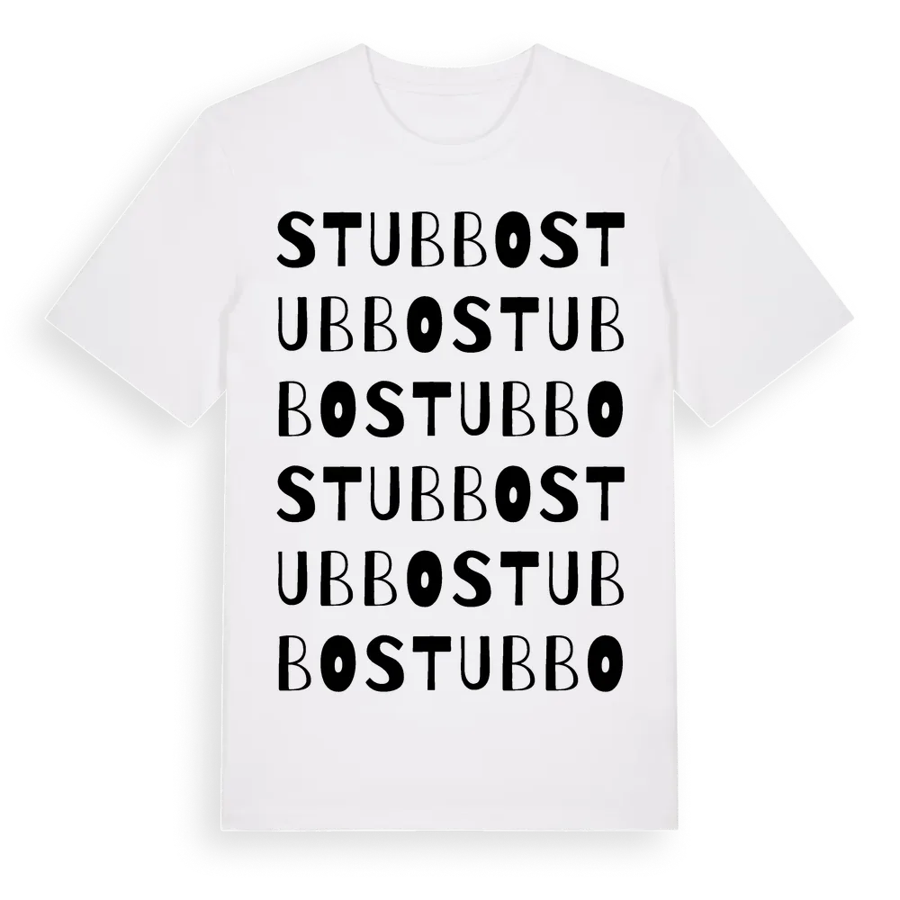 En ordlek byggd på Stubbos namn. Subtilt och klurig – ett motiv som bara de som verkligen känner platsen fullt ut förstår. Premium bomull, unisex – från byn Stubbo i Uppsala län.