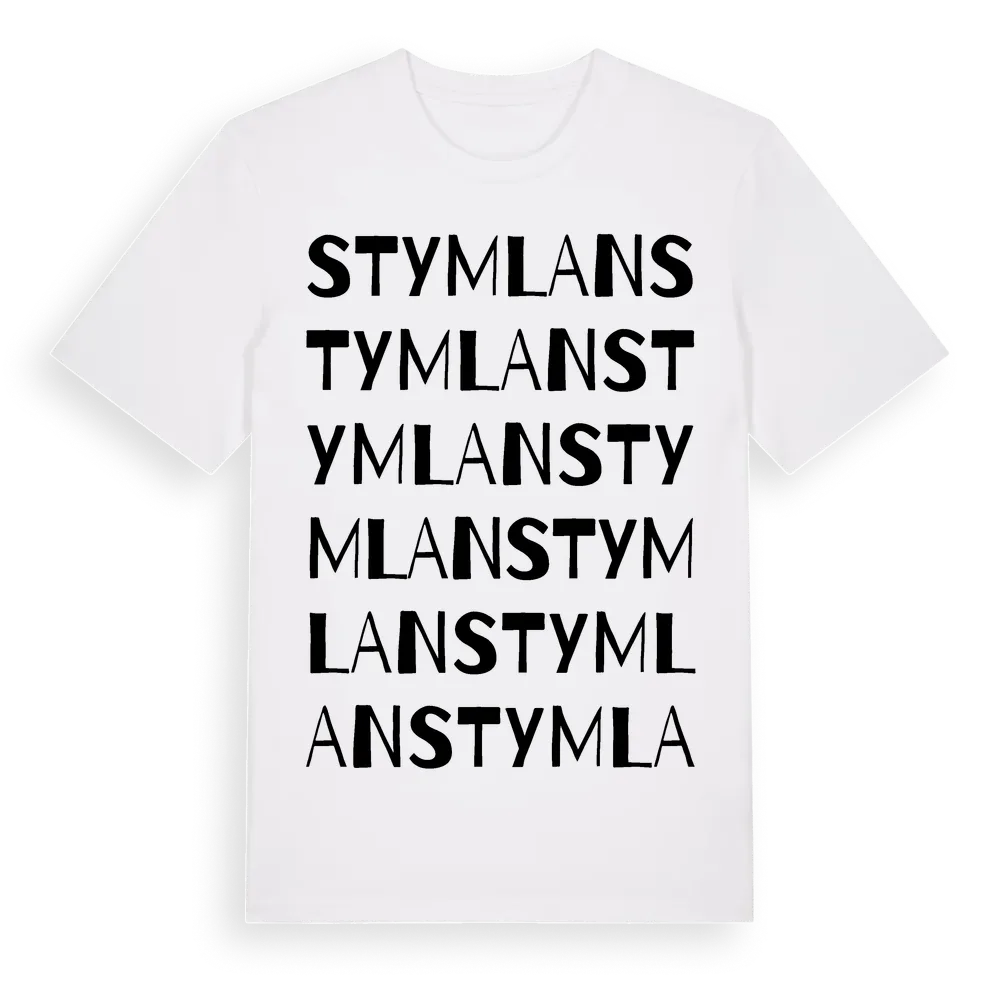 Stymlan ordlek t-shirt är inspirerad av Stymlan i Uppsala län, Sverige. Tröjan är designad för dig som har en speciell koppling till platsen – oavsett om du bor här, har rötterna här eller bara älskar Stymlan.