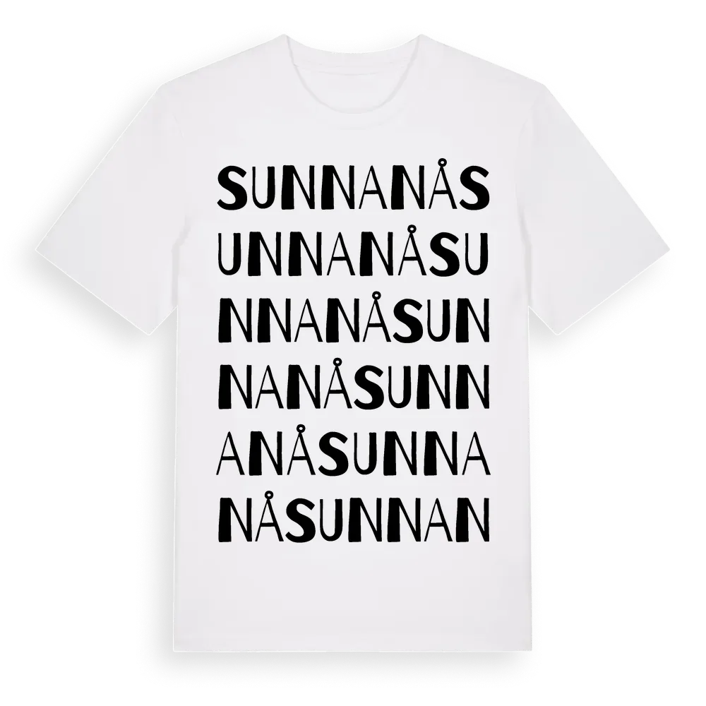 Sunnanå ordlek t-shirt är inspirerad av Sunnanå i Uppsala län, Sverige. Tröjan är designad för dig som har en speciell koppling till platsen – oavsett om du bor här, har rötterna här eller bara älskar Sunnanå.
