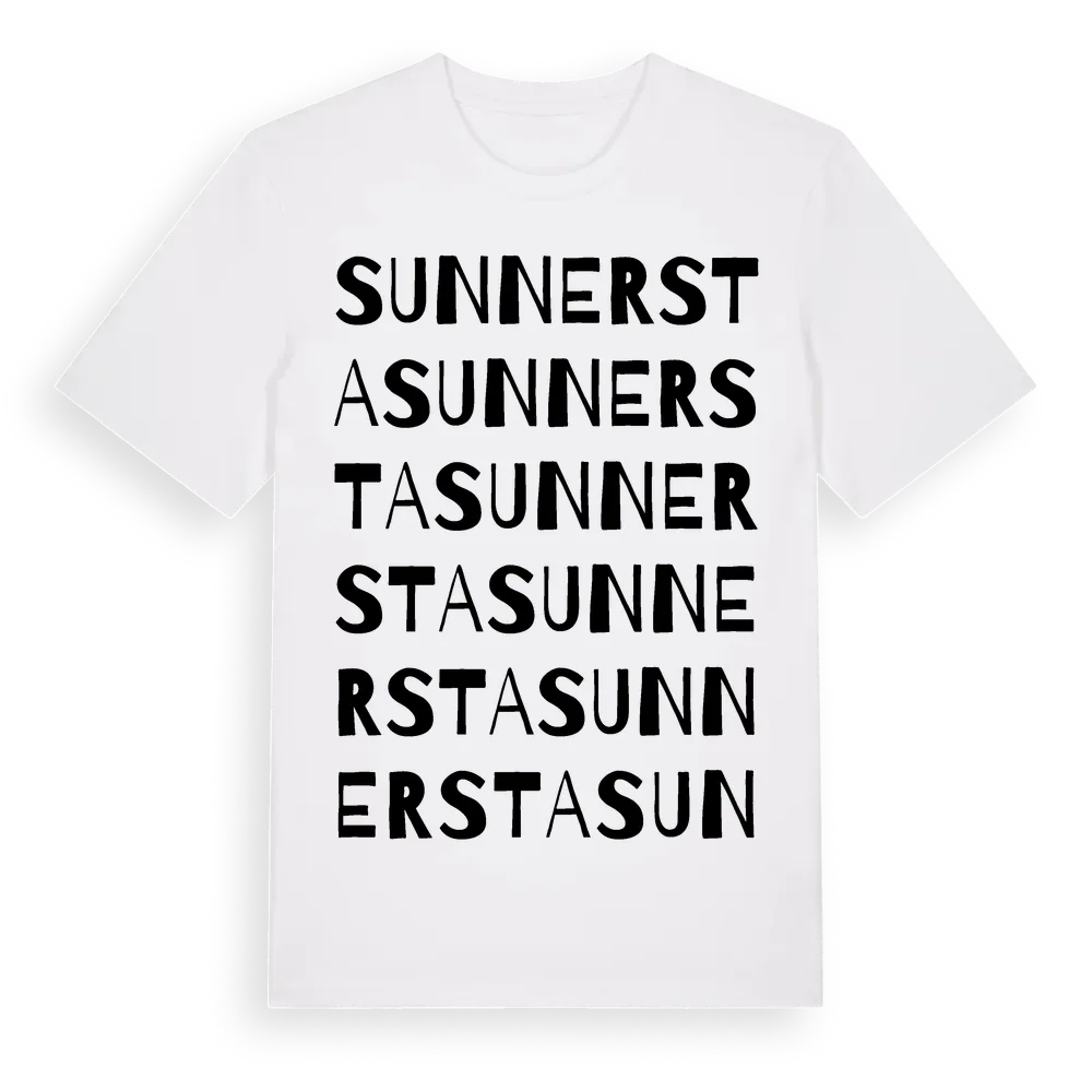 Sunnersta ordlek t-shirt är inspirerad av Sunnersta i Uppsala län, Sverige. Tröjan är designad för dig som har en speciell koppling till platsen – oavsett om du bor här, har rötterna här eller bara älskar Sunnersta.