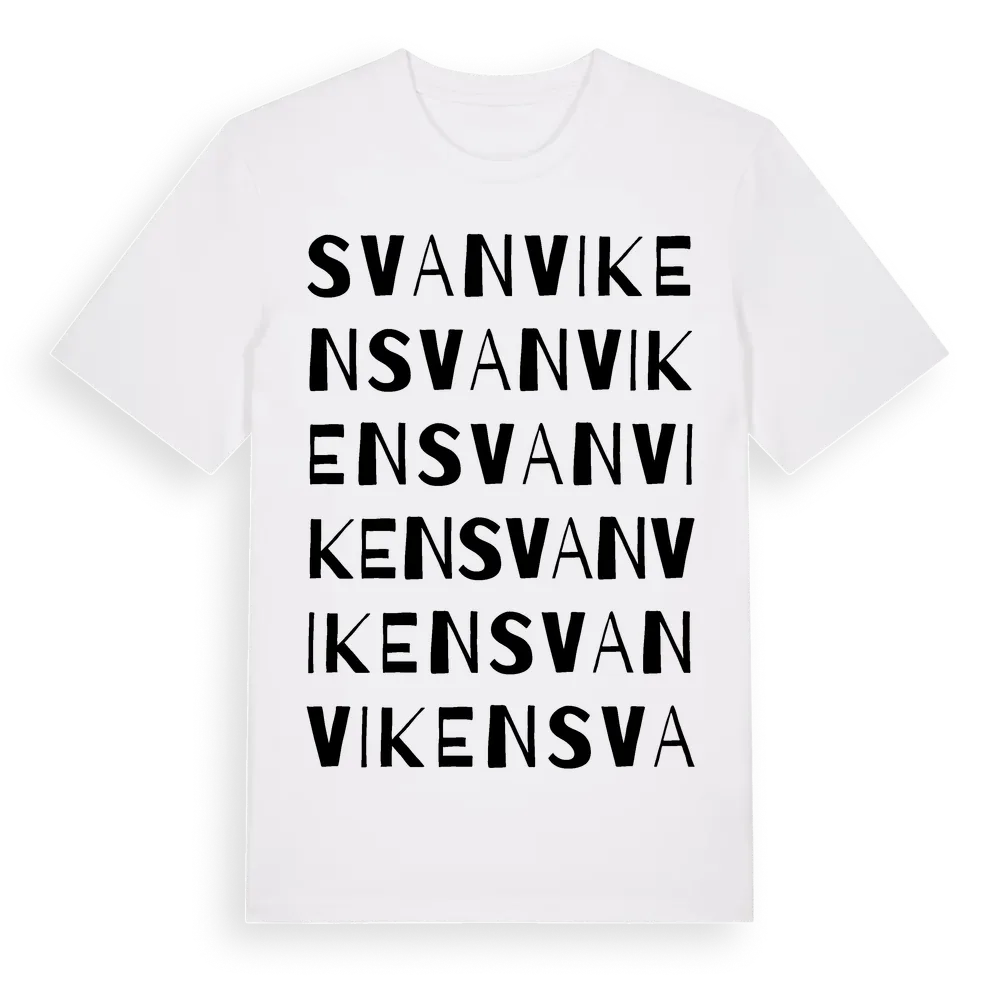 Svanviken ordlek t-shirt är inspirerad av Svanviken i Uppsala län, Sverige. Tröjan är designad för dig som har en speciell koppling till platsen – oavsett om du bor här, har rötterna här eller bara älskar Svanviken.
