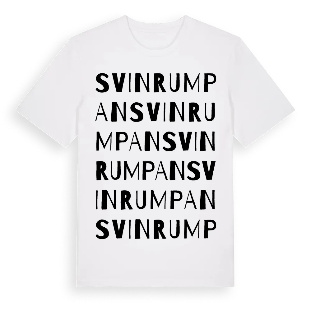 Svinrumpan ordlek t-shirt är inspirerad av Svinrumpan i Uppsala län, Sverige. Tröjan är designad för dig som har en speciell koppling till platsen – oavsett om du bor här, har rötterna här eller bara älskar Svinrumpan.