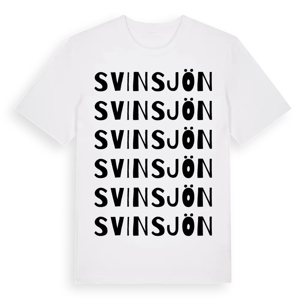 Svinsjön ordlek t-shirt är inspirerad av Svinsjön i Uppsala län, Sverige. Tröjan är designad för dig som har en speciell koppling till platsen – oavsett om du bor här, har rötterna här eller bara älskar Svinsjön.