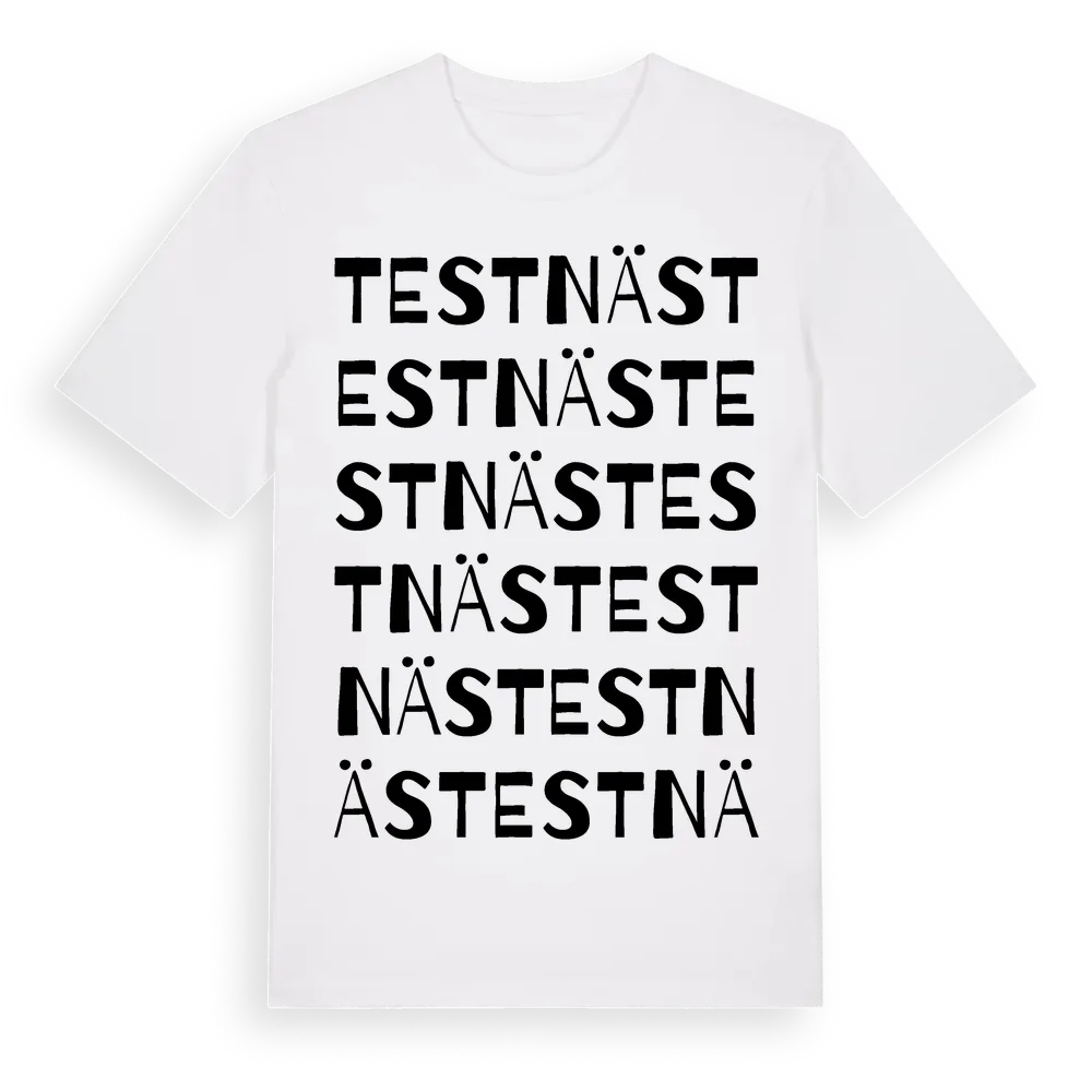 Testnäs ordlek t-shirt är inspirerad av Testnäs i Uppsala län, Sverige. Tröjan är designad för dig som har en speciell koppling till platsen – oavsett om du bor här, har rötterna här eller bara älskar Testnäs.