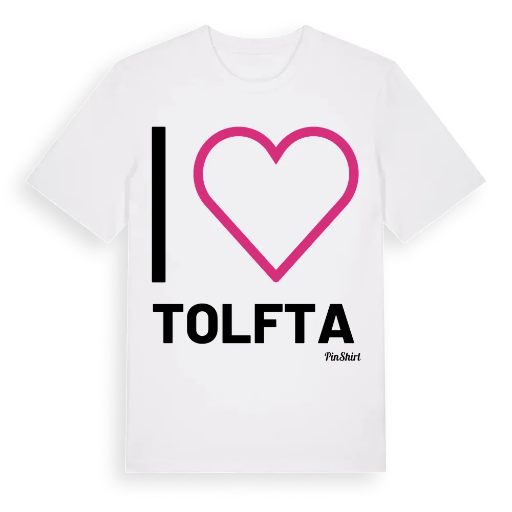 Jag älskar Tolfta t-shirt stort tryck är inspirerad av byn Tolfta i Uppsala län, Sverige. Tröjan är designad för dig som har en speciell koppling till platsen – oavsett om du bor här, har rötterna här eller bara älskar Tolfta.