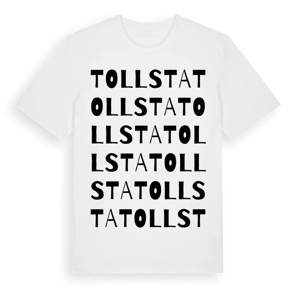 En ordlek byggd på Tollstas namn. Subtilt och klurig – ett motiv som bara de som verkligen känner platsen fullt ut förstår. Premium bomull, unisex – från Tollsta i Uppsala län.