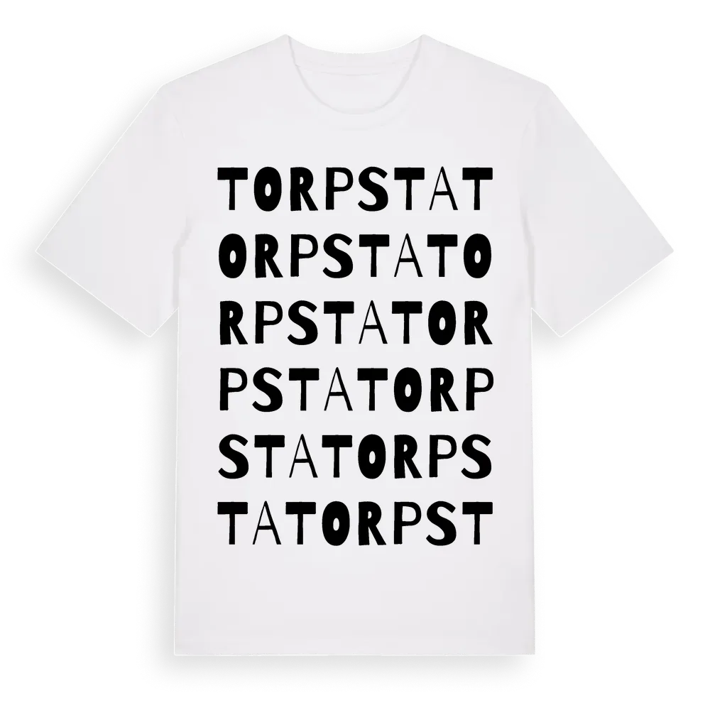 Torpsta ordlek t-shirt är inspirerad av byn Torpsta i Uppsala län, Sverige. Tröjan är designad för dig som har en speciell koppling till platsen – oavsett om du bor här, har rötterna här eller bara älskar Torpsta.