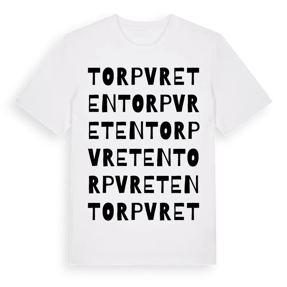 Torpvreten ordlek t-shirt är inspirerad av Torpvreten i Uppsala län, Sverige. Tröjan är designad för dig som har en speciell koppling till platsen – oavsett om du bor här, har rötterna här eller bara älskar Torpvreten.