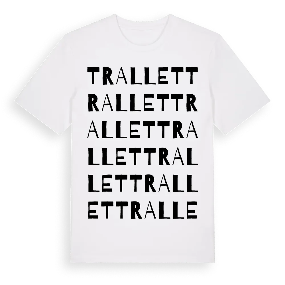 Trallet ordlek t-shirt är inspirerad av Trallet i Uppsala län, Sverige. Tröjan är designad för dig som har en speciell koppling till platsen – oavsett om du bor här, har rötterna här eller bara älskar Trallet.
