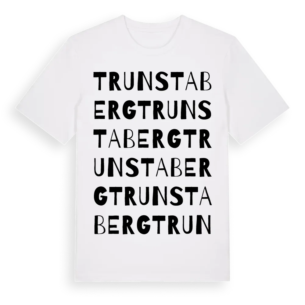 Trunstaberg ordlek t-shirt är inspirerad av Trunstaberg i Uppsala län, Sverige. Tröjan är designad för dig som har en speciell koppling till platsen – oavsett om du bor här, har rötterna här eller bara älskar Trunstaberg.