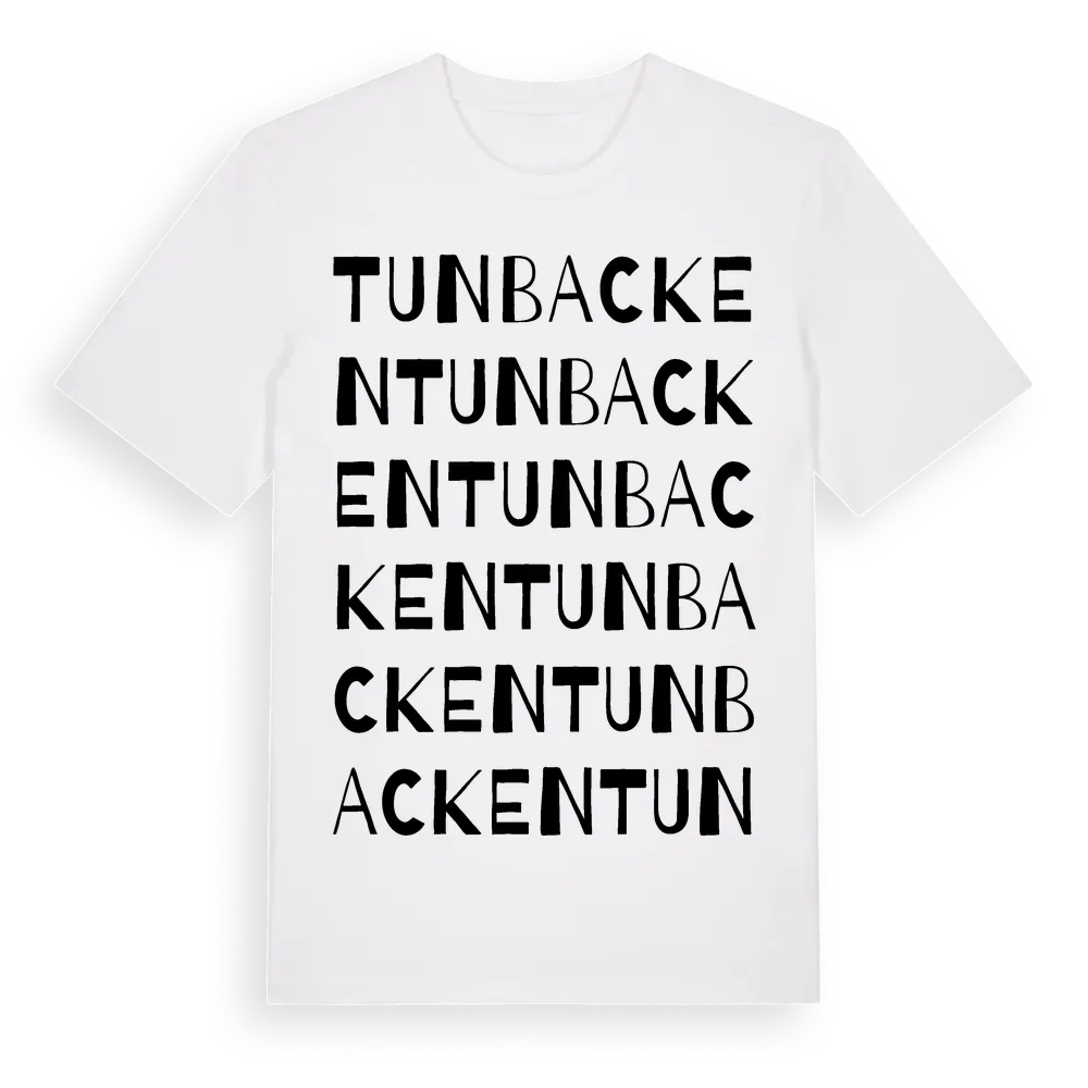 Tunbacken ordlek t-shirt är inspirerad av Tunbacken i Uppsala län, Sverige. Tröjan är designad för dig som har en speciell koppling till platsen – oavsett om du bor här, har rötterna här eller bara älskar Tunbacken.