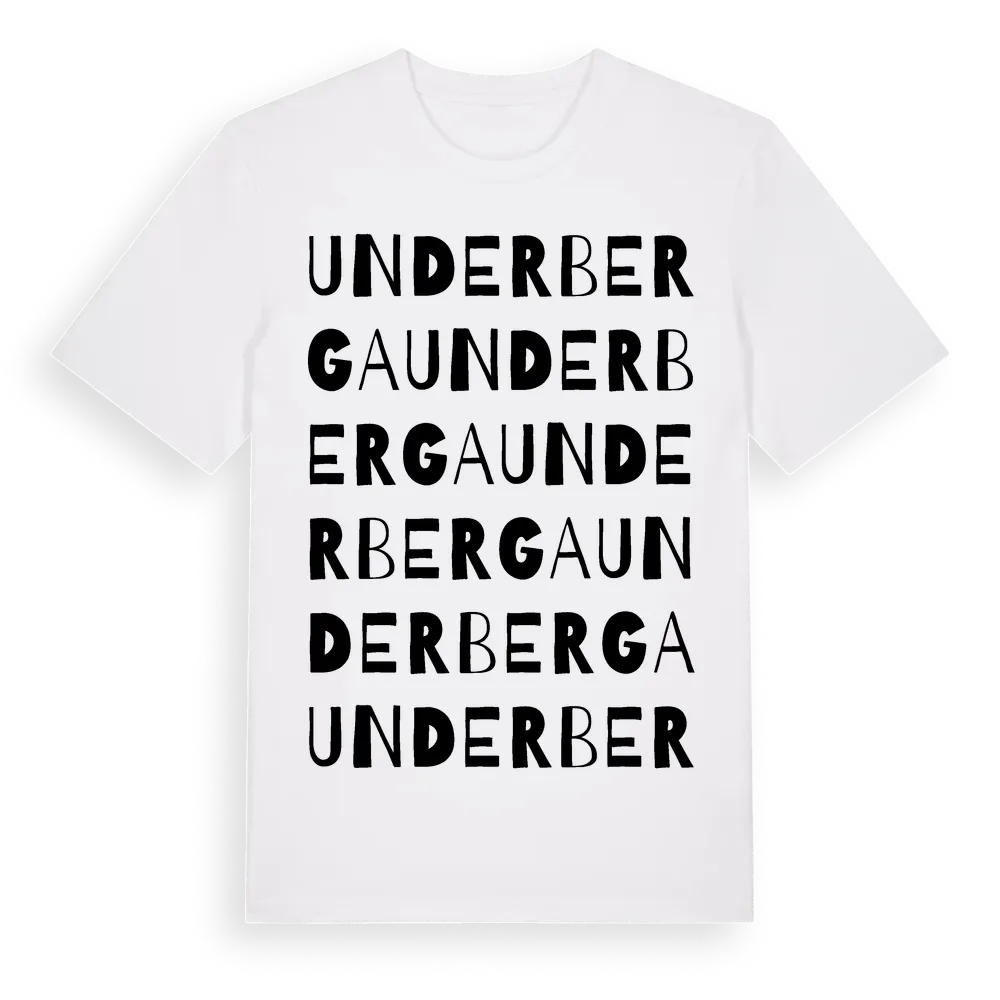 Underberga ordlek t-shirt är inspirerad av Underberga i Uppsala län, Sverige. Tröjan är designad för dig som har en speciell koppling till platsen – oavsett om du bor här, har rötterna här eller bara älskar Underberga.