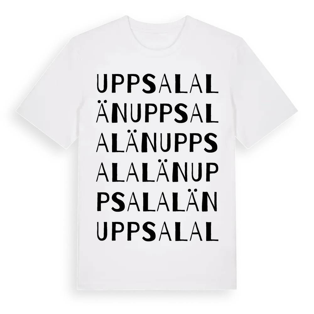 Uppsala Län ordlek t-shirt är inspirerad av Uppsala Län i Uppsala län, Sverige. Tröjan är designad för dig som har en speciell koppling till platsen – oavsett om du bor här, har rötterna här eller bara älskar Uppsala Län.