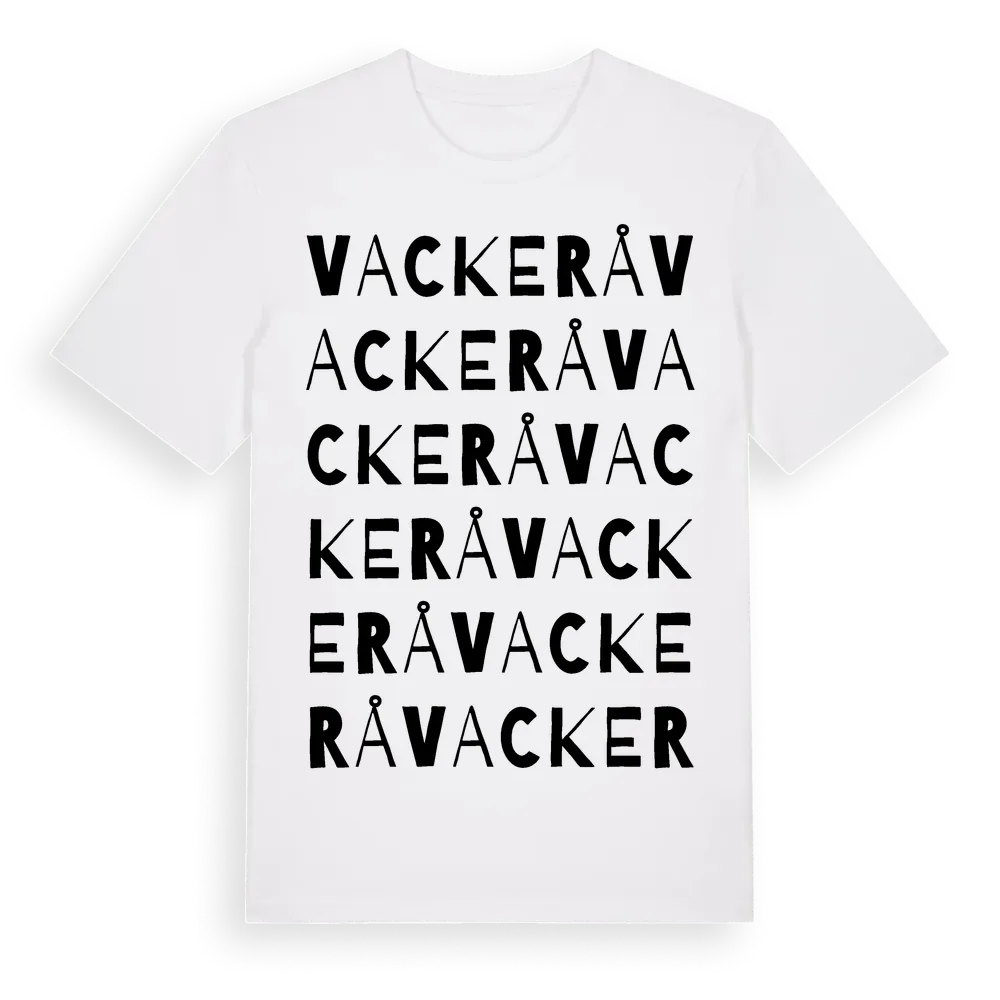 Vackerå ordlek t-shirt är inspirerad av Vackerå i Uppsala län, Sverige. Tröjan är designad för dig som har en speciell koppling till platsen – oavsett om du bor här, har rötterna här eller bara älskar Vackerå.