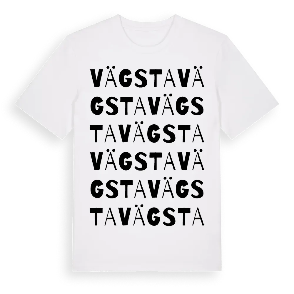 Vägsta ordlek t-shirt är inspirerad av Vägsta i Uppsala län, Sverige. Tröjan är designad för dig som har en speciell koppling till platsen – oavsett om du bor här, har rötterna här eller bara älskar Vägsta.