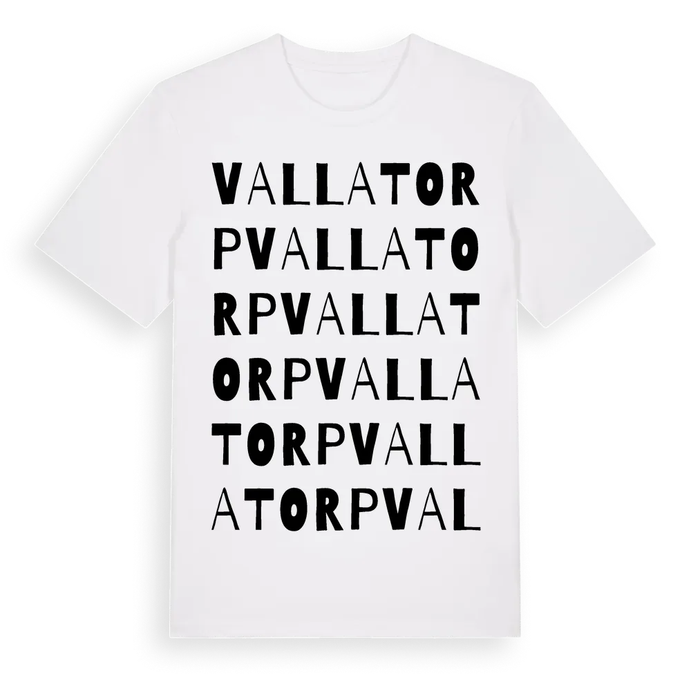 Vallatorp ordlek t-shirt är inspirerad av Vallatorp i Uppsala län, Sverige. Tröjan är designad för dig som har en speciell koppling till platsen – oavsett om du bor här, har rötterna här eller bara älskar Vallatorp.