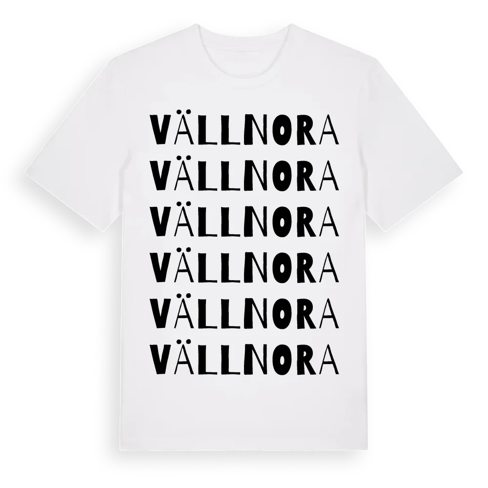 Vällnora ordlek t-shirt är inspirerad av byn Vällnora i Uppsala län, Sverige. Tröjan är designad för dig som har en speciell koppling till platsen – oavsett om du bor här, har rötterna här eller bara älskar Vällnora.