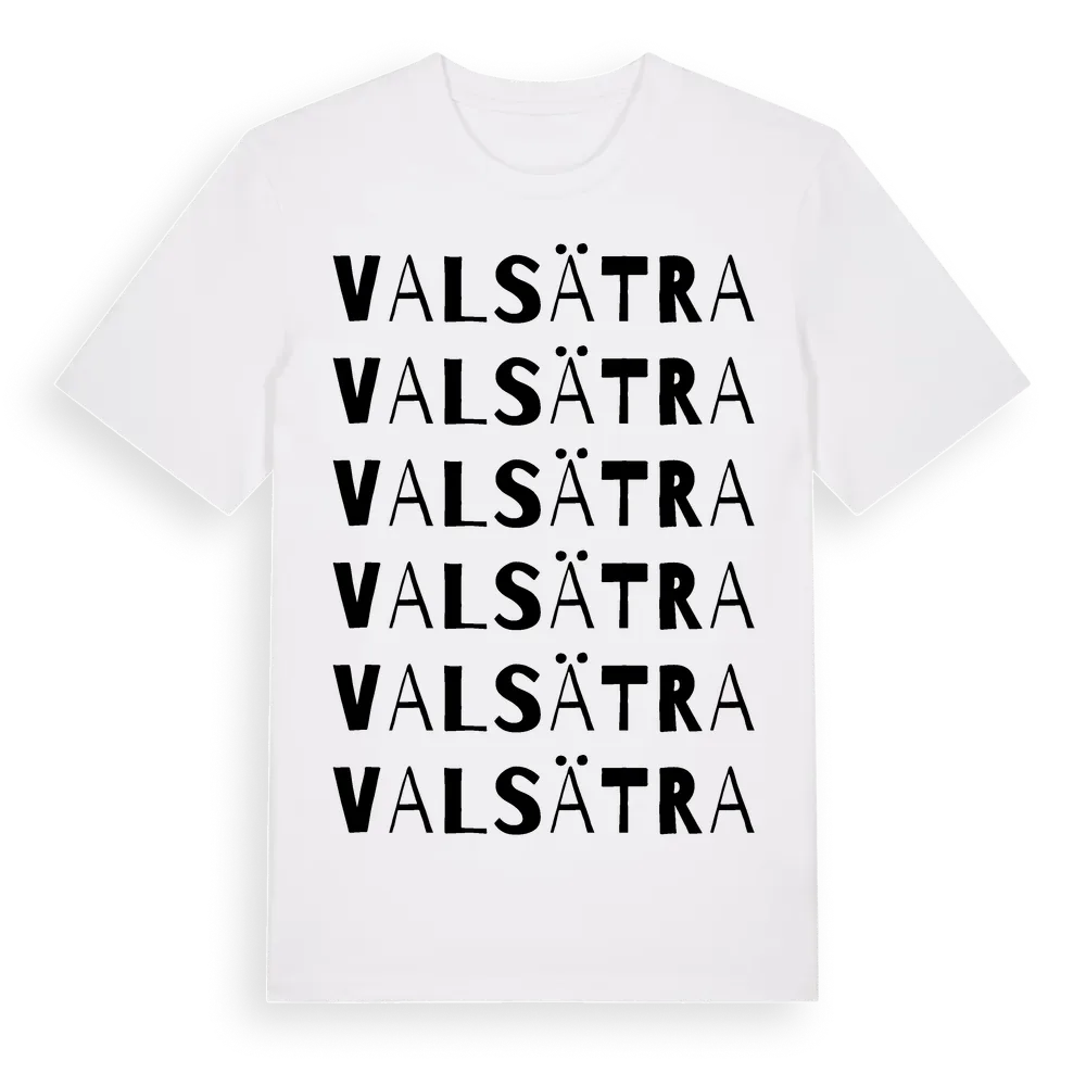Valsätra ordlek t-shirt är inspirerad av Valsätra i Uppsala län, Sverige. Tröjan är designad för dig som har en speciell koppling till platsen – oavsett om du bor här, har rötterna här eller bara älskar Valsätra.