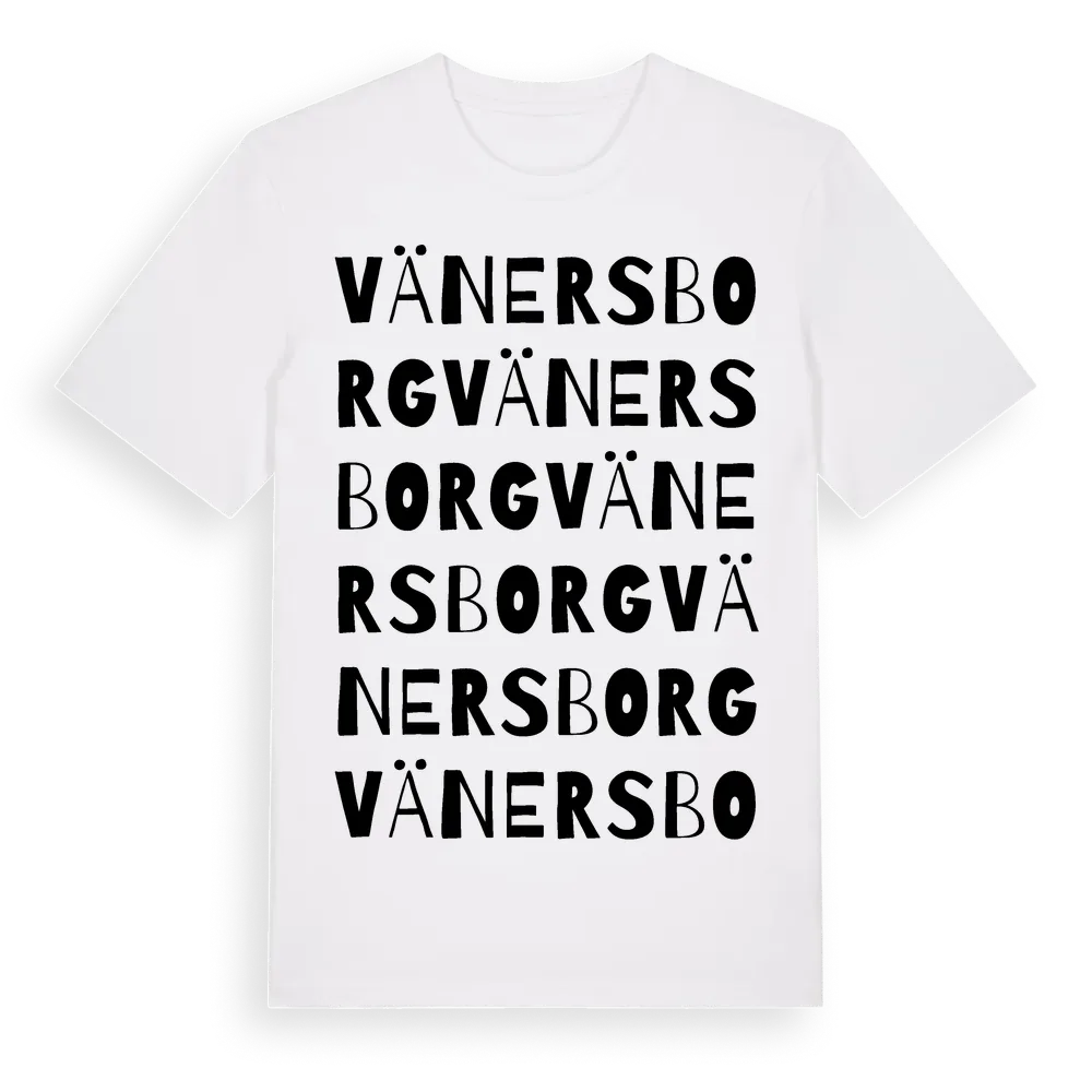 Vänersborg ordlek t-shirt är inspirerad av Vänersborg i Uppsala län, Sverige. Tröjan är designad för dig som har en speciell koppling till platsen – oavsett om du bor här, har rötterna här eller bara älskar Vänersborg.