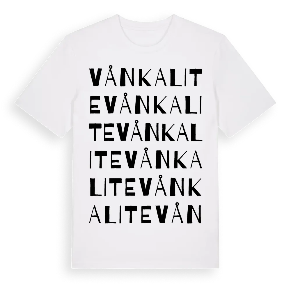 Vånkalite ordlek t-shirt är inspirerad av Vånkalite i Uppsala län, Sverige. Tröjan är designad för dig som har en speciell koppling till platsen – oavsett om du bor här, har rötterna här eller bara älskar Vånkalite.