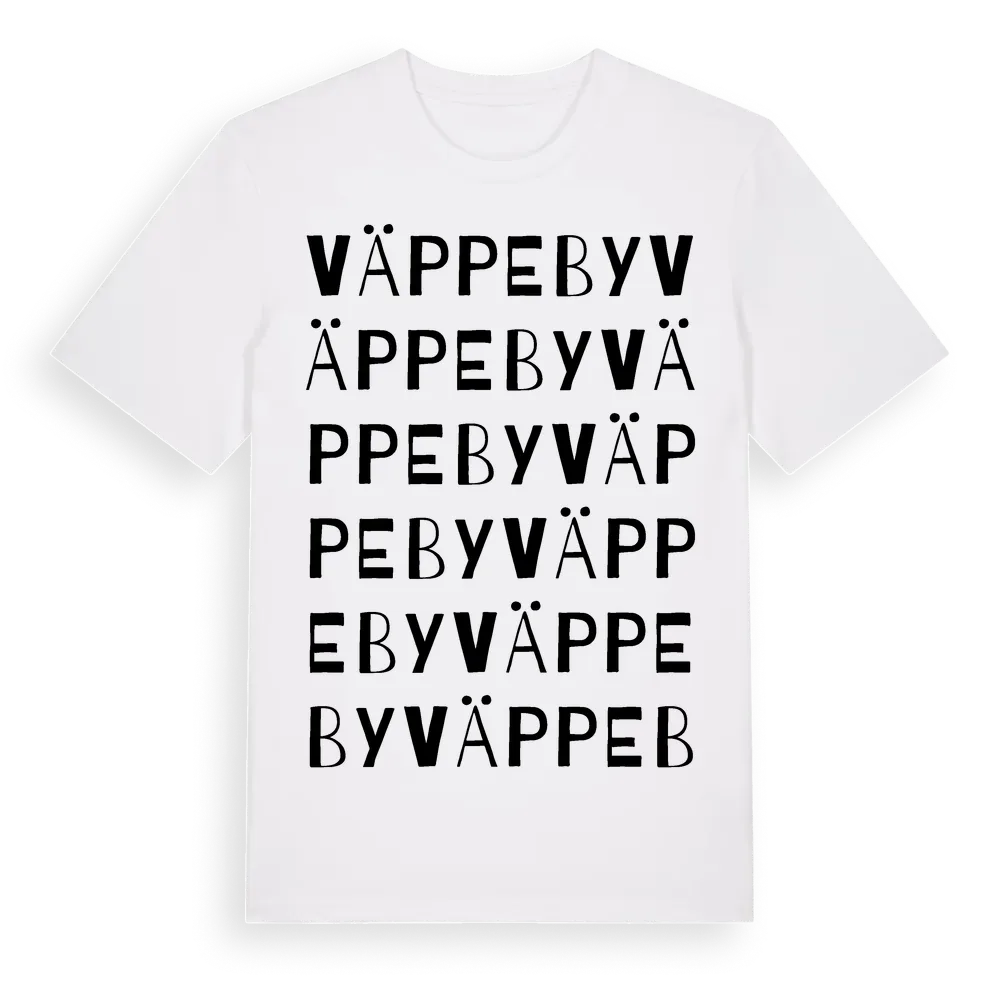 Väppeby ordlek t-shirt är inspirerad av byn Väppeby i Uppsala län, Sverige. Tröjan är designad för dig som har en speciell koppling till platsen – oavsett om du bor här, har rötterna här eller bara älskar Väppeby.