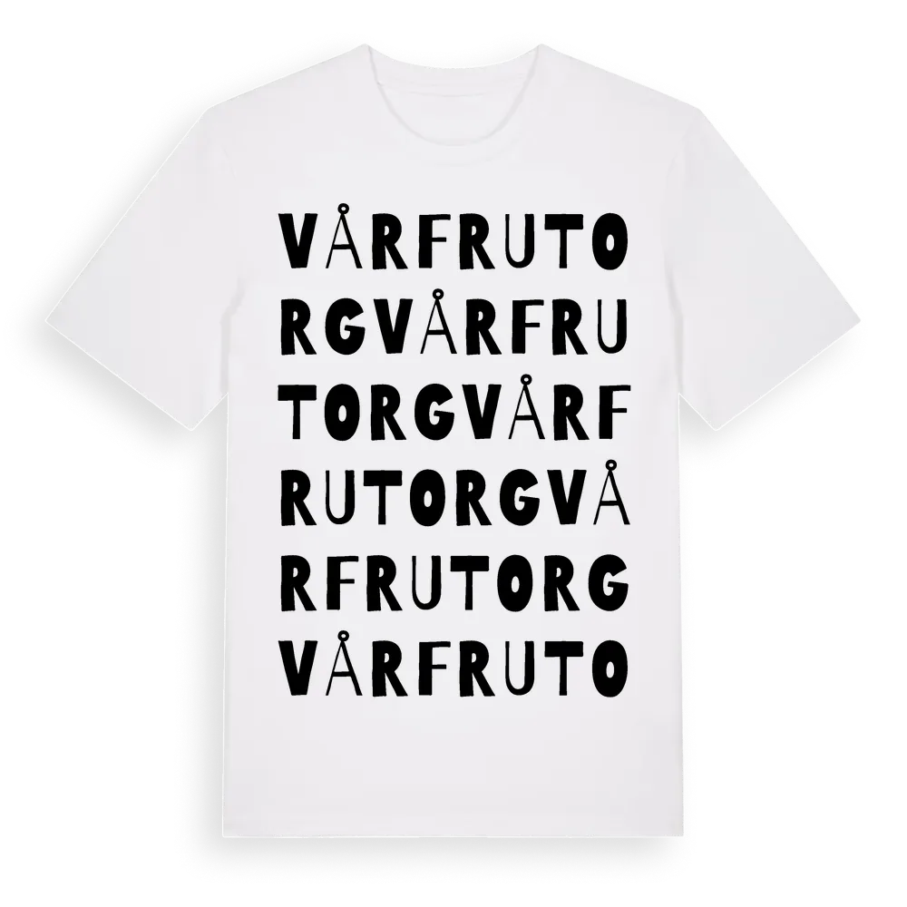 Vårfrutorg ordlek t-shirt är inspirerad av Vårfrutorg i Uppsala län, Sverige. Tröjan är designad för dig som har en speciell koppling till platsen – oavsett om du bor här, har rötterna här eller bara älskar Vårfrutorg.