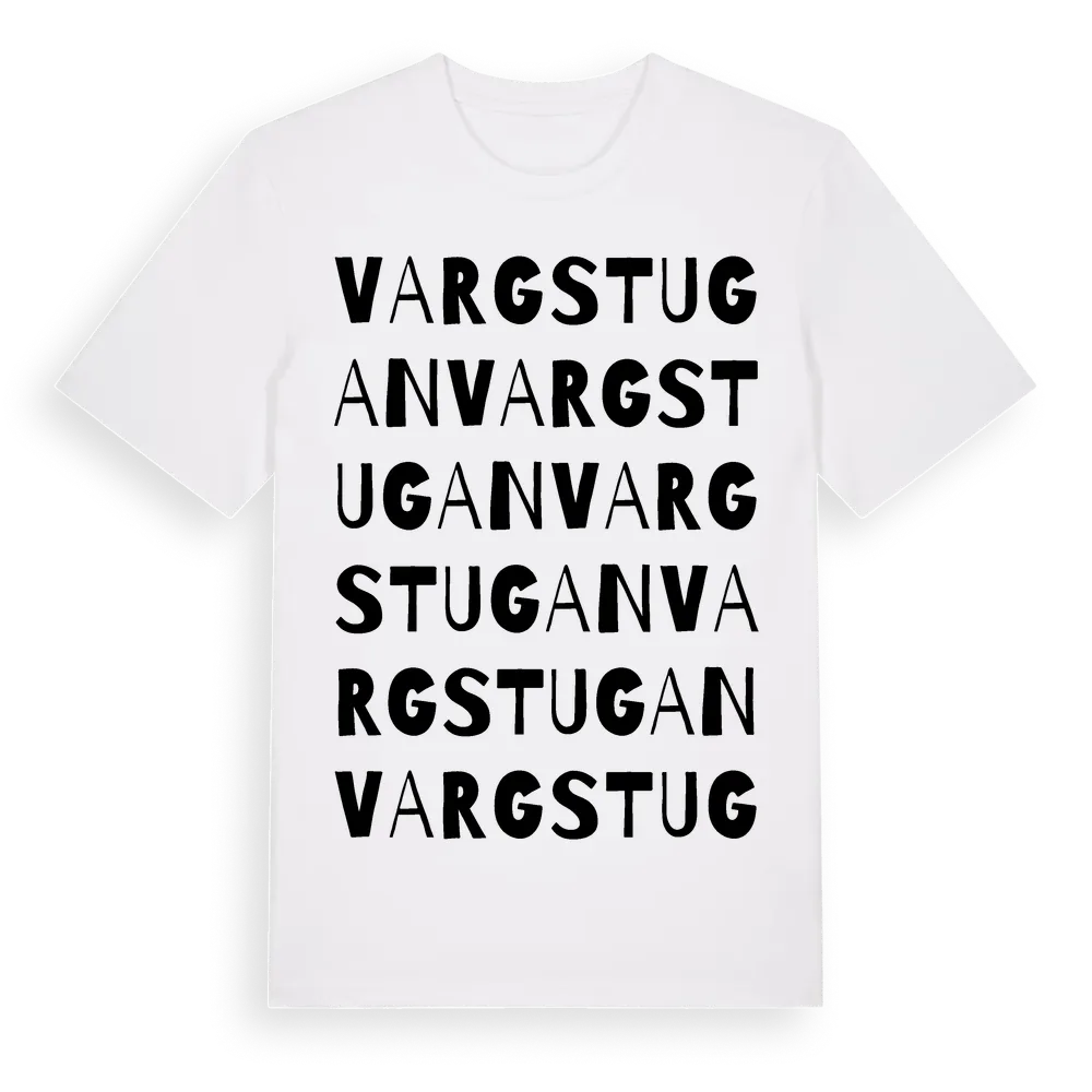 Vargstugan ordlek t-shirt är inspirerad av Vargstugan i Uppsala län, Sverige. Tröjan är designad för dig som har en speciell koppling till platsen – oavsett om du bor här, har rötterna här eller bara älskar Vargstugan.