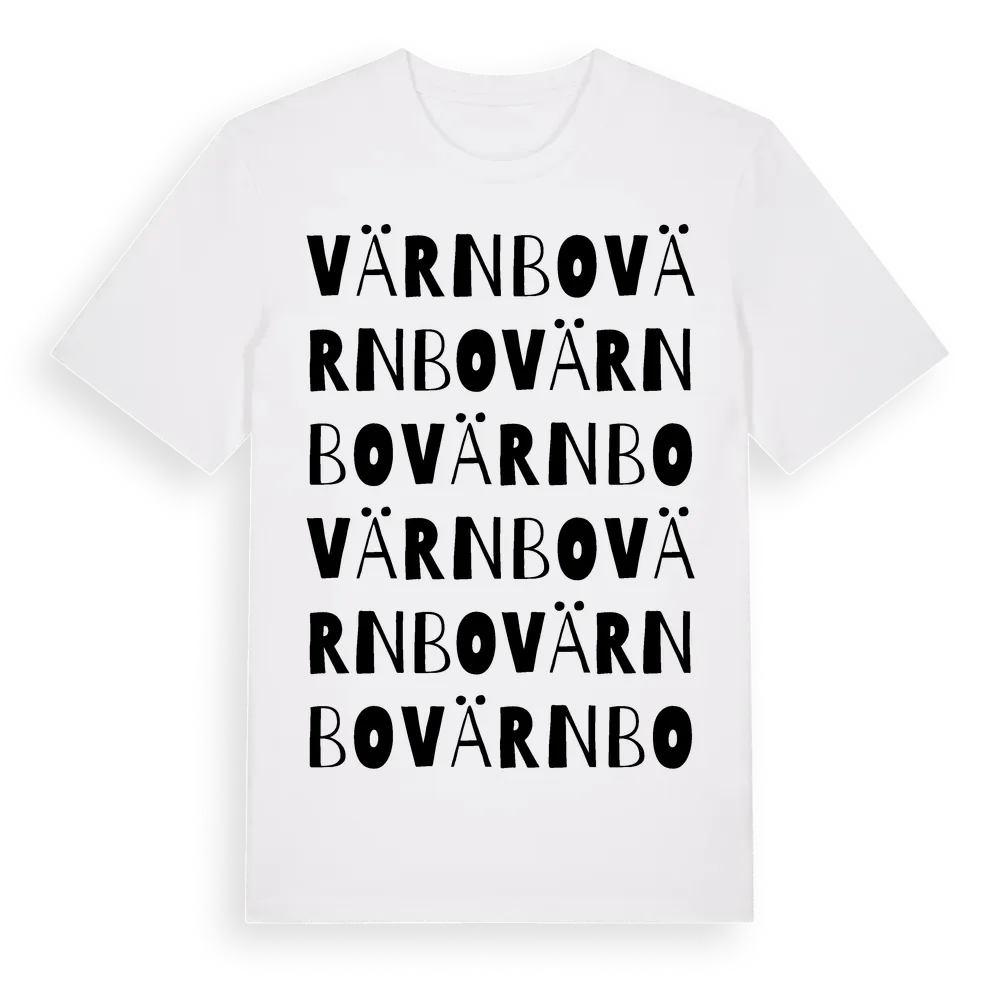 Värnbo ordlek t-shirt är inspirerad av Värnbo i Uppsala län, Sverige. Tröjan är designad för dig som har en speciell koppling till platsen – oavsett om du bor här, har rötterna här eller bara älskar Värnbo.
