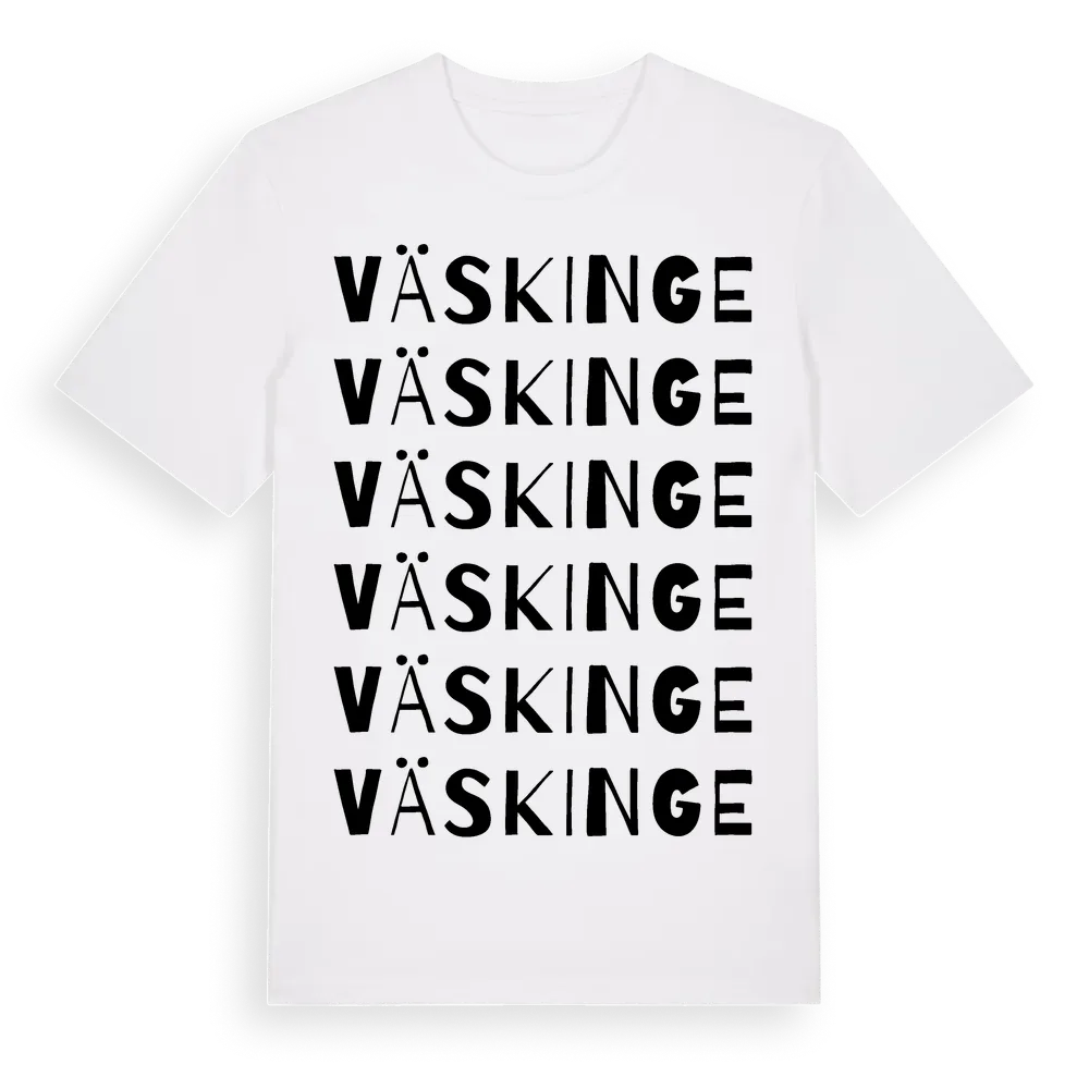 Väskinge ordlek t-shirt är inspirerad av byn Väskinge i Uppsala län, Sverige. Tröjan är designad för dig som har en speciell koppling till platsen – oavsett om du bor här, har rötterna här eller bara älskar Väskinge.