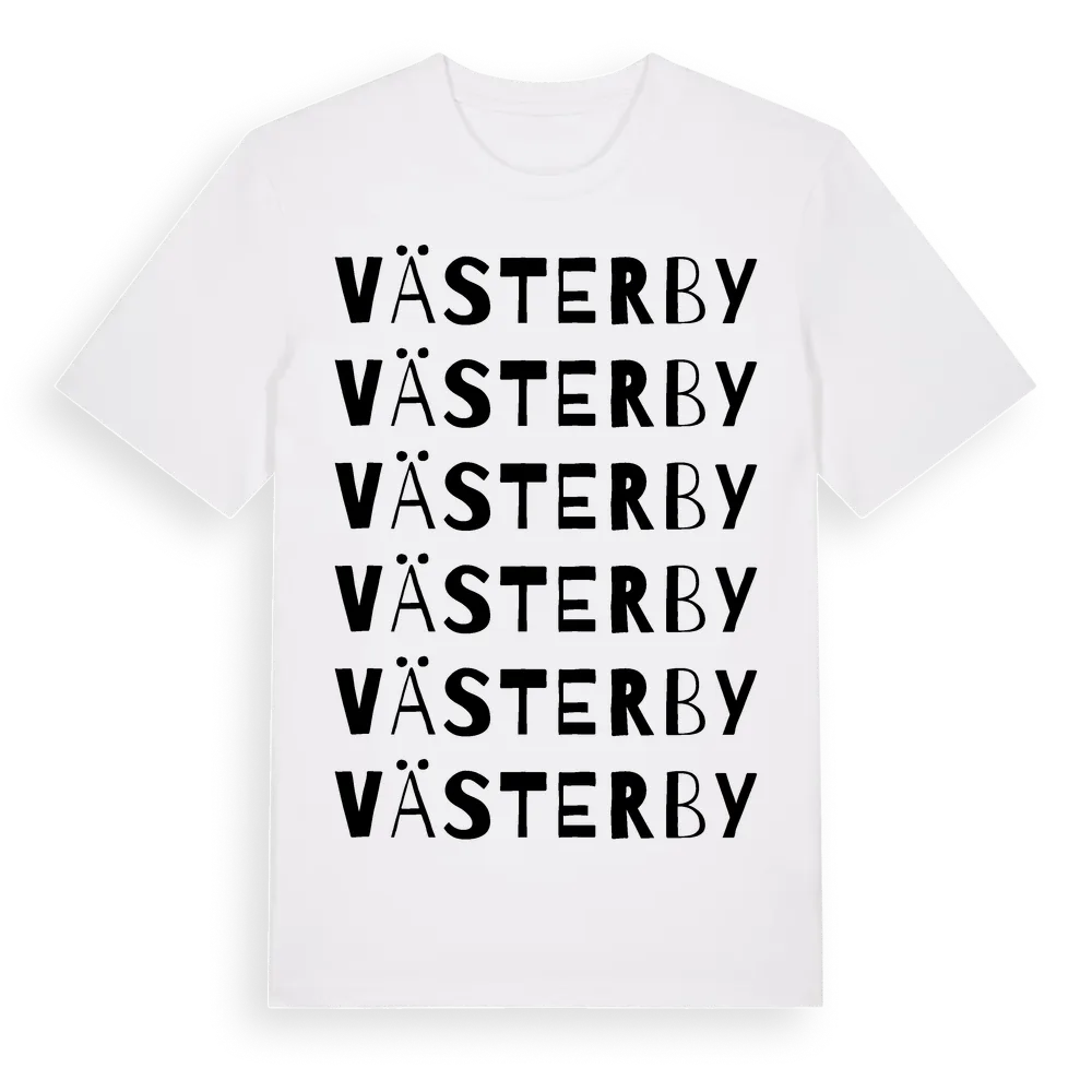 Västerby ordlek t-shirt är inspirerad av byn Västerby i Uppsala län, Sverige. Tröjan är designad för dig som har en speciell koppling till platsen – oavsett om du bor här, har rötterna här eller bara älskar Västerby.