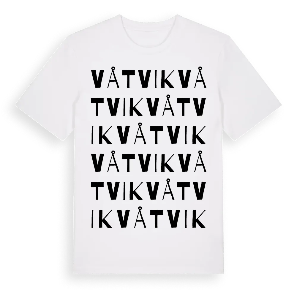 Våtvik ordlek t-shirt är inspirerad av Våtvik i Uppsala län, Sverige. Tröjan är designad för dig som har en speciell koppling till platsen – oavsett om du bor här, har rötterna här eller bara älskar Våtvik.