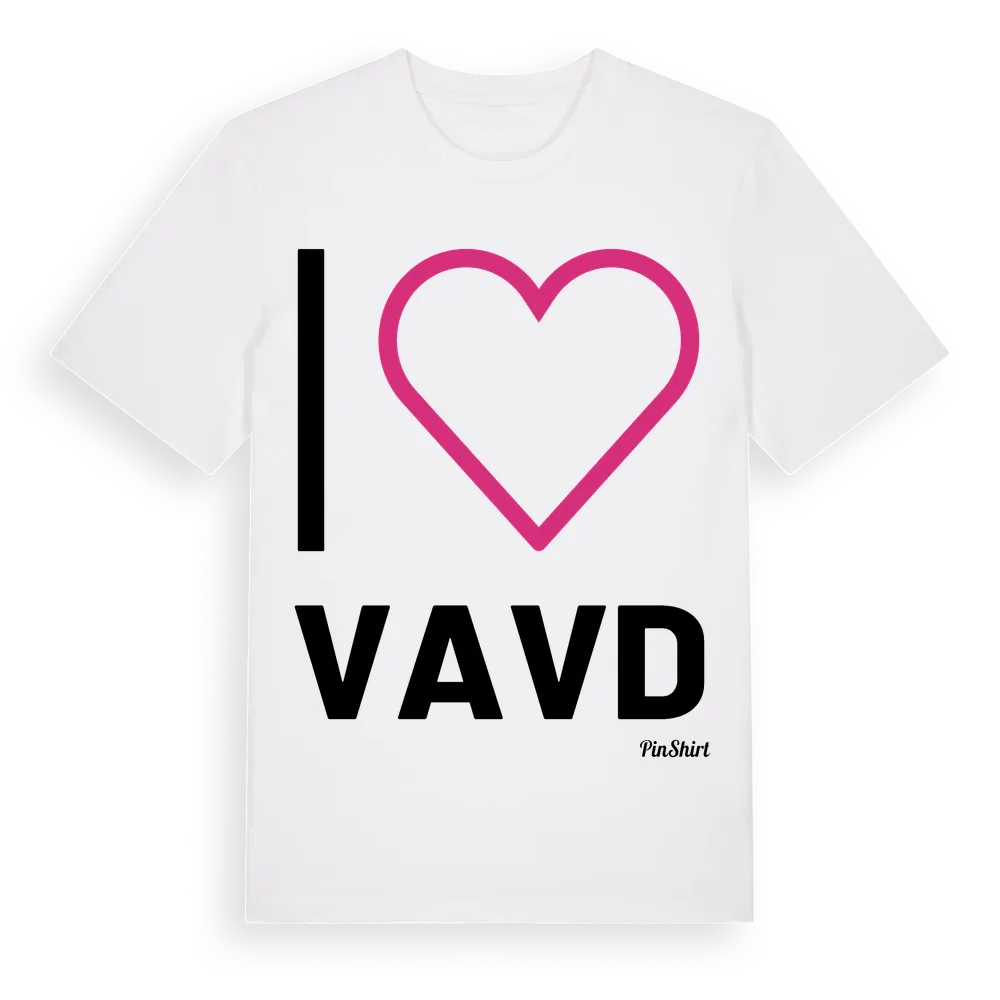 Det klassiska "I ❤ Vavd"-motivet i stort format som täcker hela bröstet. För dig som vill visa kärleken till Vavd på riktigt. Premium bomull, unisex – från byn Vavd i Uppsala län.