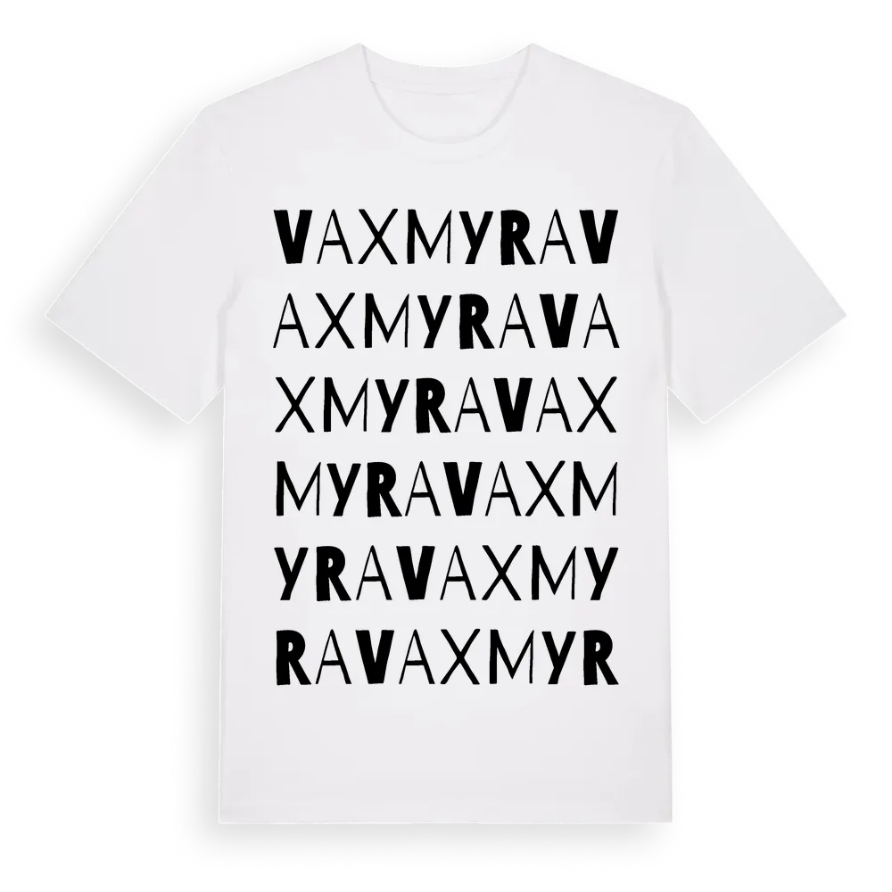 Vaxmyra ordlek t-shirt är inspirerad av byn Vaxmyra i Uppsala län, Sverige. Tröjan är designad för dig som har en speciell koppling till platsen – oavsett om du bor här, har rötterna här eller bara älskar Vaxmyra.