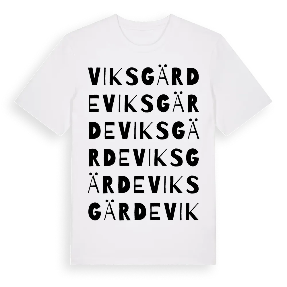 Viksgärde ordlek t-shirt är inspirerad av Viksgärde i Uppsala län, Sverige. Tröjan är designad för dig som har en speciell koppling till platsen – oavsett om du bor här, har rötterna här eller bara älskar Viksgärde.