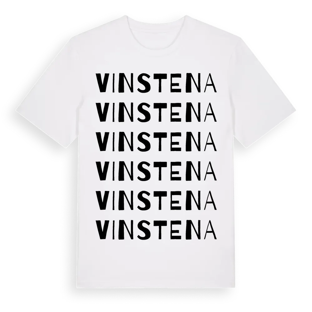 En ordlek byggd på Vinstenas namn. Subtilt och klurig – ett motiv som bara de som verkligen känner platsen fullt ut förstår. Premium bomull, unisex – från Vinstena i Uppsala län.